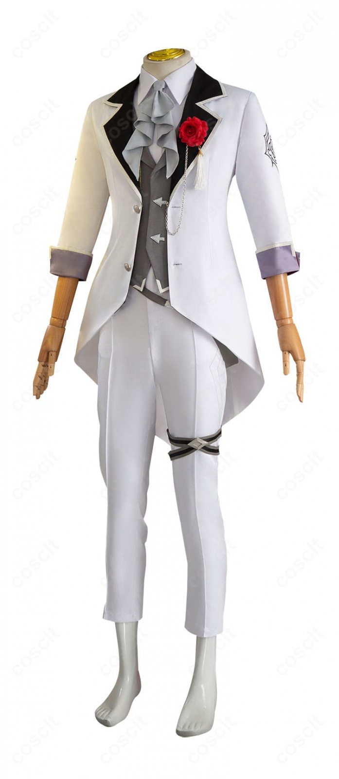 COSCLTのアルジェンティ礼装コスプレ衣装は、イベント参加はもちろん、スタジオ撮影やロケ撮影でも映えるよう、シルエットと装飾のバランスにこだわった一着です。コートの存在感、ベストとシャツの重なり、胸飾りや腰飾りのアクセントが、騎士らしい凛とした雰囲気を引き立てます。素材にはコスプレ専用生地を使用し、見た目の再現度だけでなく、長時間の着用でも動きやすい仕上がりを意識しています。